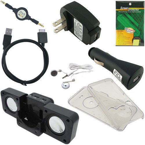 Ultimate, Premium Accessory Combo Bundle: Clear Crystal Case Cover, Car Charger, Wall / Travel / AC Adapter Charger, USB 2in1 Data Sync Cable, White Earphones / Headphones, 3.5mm Retractable Auxillary Cable, Screen Guard / Protector With A Lint Cleaning Cloth, Black Foldable Speaker Dock For The Sony Walkman NWZ S630 Or S730 Series (S636, S638, S639, S736, S738, S739)